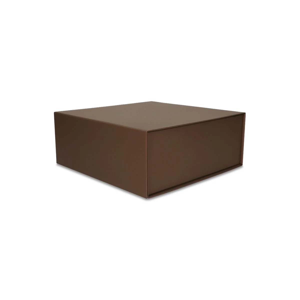 Kwadratowe pudełko prezentowe w szlachetnym odcieniu brązu z wykończeniem Silk Touch. Kolor inspirowany klasyczną elegancją sprawia, że opakowanie wygląda solidnie i prestiżowo. Idealny wybór do zestawów prezentowych premium, w tym wyrobów rzemieślniczych, akcesoriów i produktów biznesowych.
