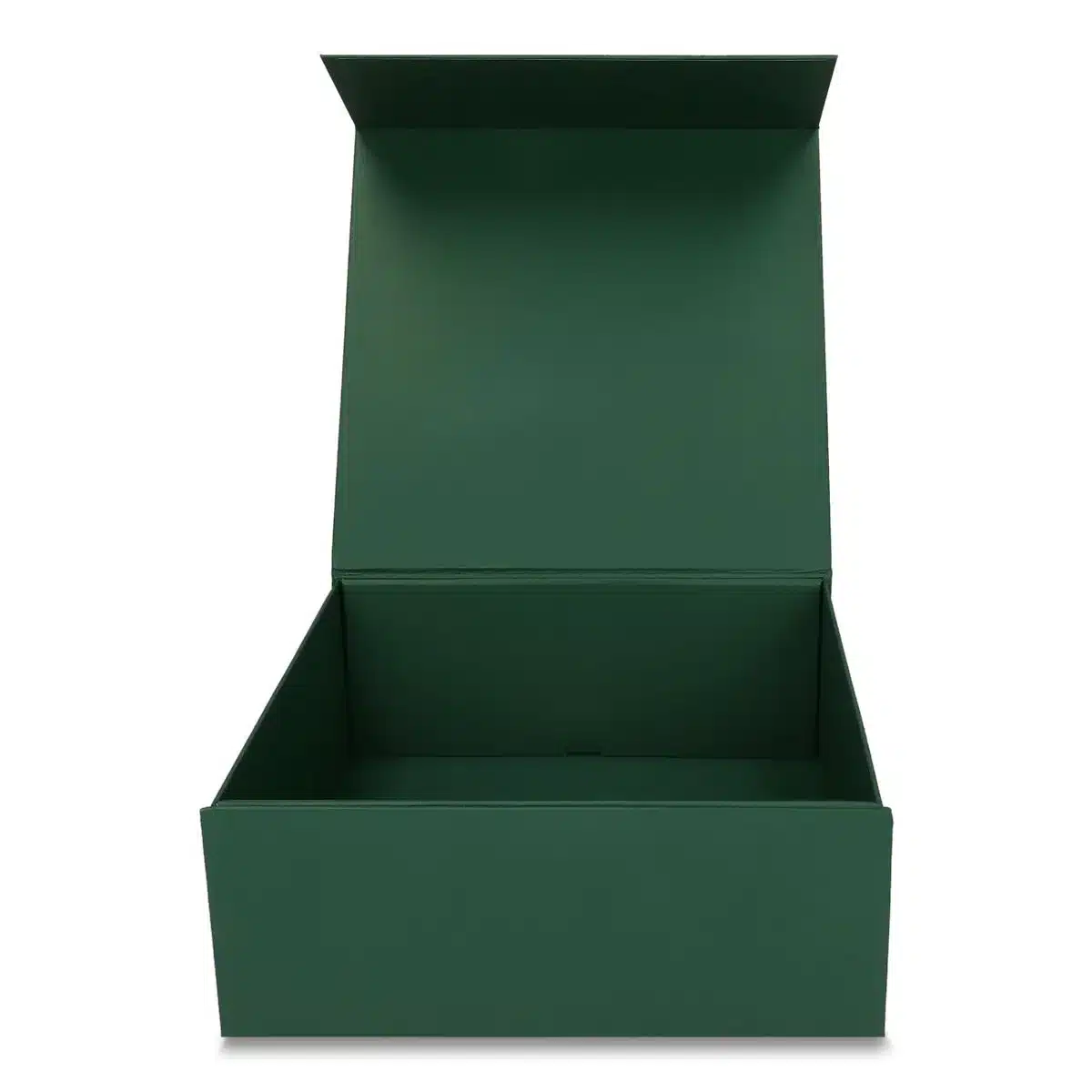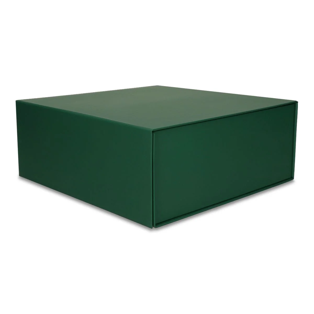 Duże pudełko prezentowe w głębokim, ciemnozielonym kolorze. Gładka okleina Silk Touch nadaje mu elegancki, wyrazisty wygląd, który świetnie sprawdza się w projektach premium. To świetna oprawa dla ekskluzywnych upominków, produktów biznesowych i zestawów okolicznościowych.