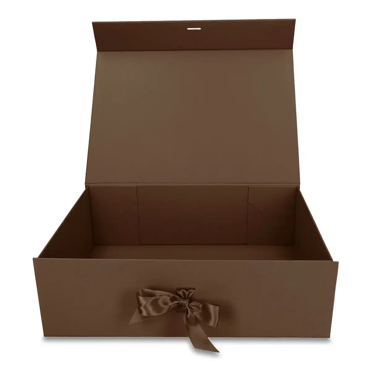 Brązowe pudełko prezentowe z wstążką 245×180×80 mm – składane