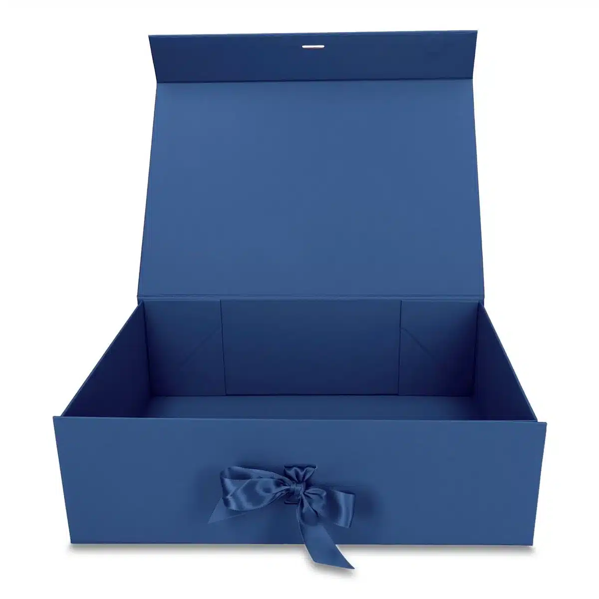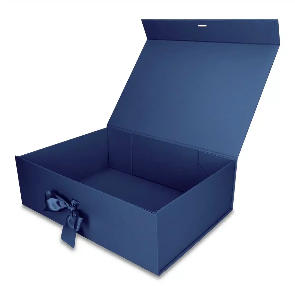 Granatowe pudełko prezentowe z wstążką 245×180×80 mm – składane