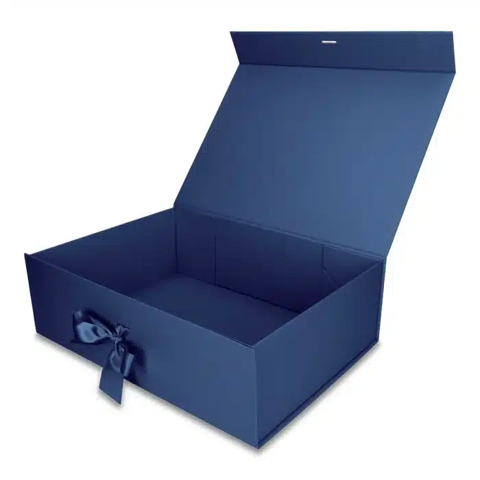 Granatowe pudełko prezentowe z wstążką 350×250×110 mm – składane
