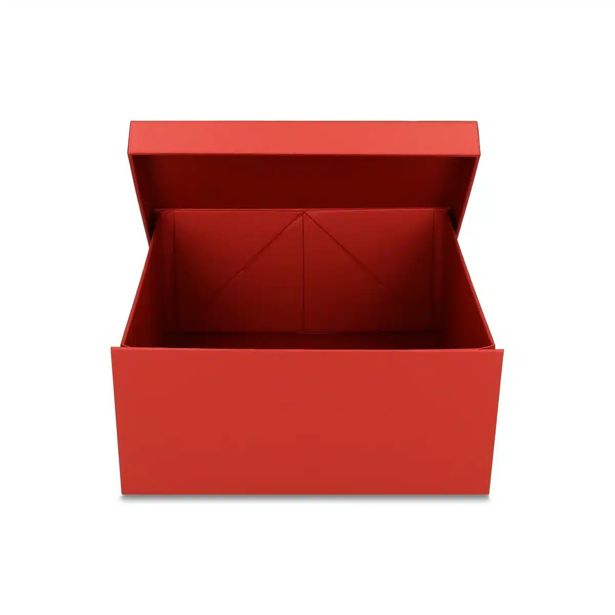 Pudełko Easy Box Plus składa się z dwóch części: składanej podstawy i gotowego wieczka. Elementy samoprzylepne marki 3M, wbudowane w konstrukcję, zapewniają szybki montaż i trwałość, a minimalistyczne wieczko w głębokiej czerwieni nadaje opakowaniu nowoczesnego i luksusowego charakteru.
