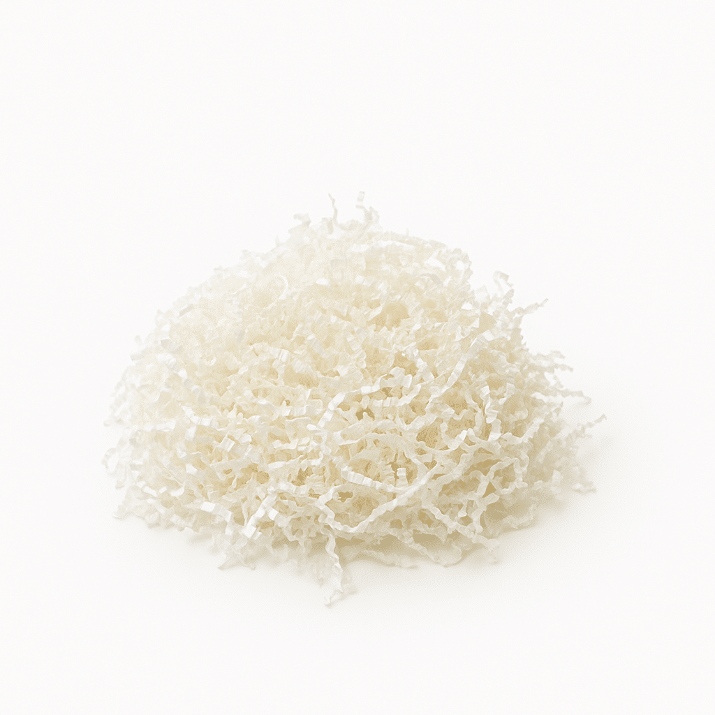 Wypełniacz ozdobny to estetyczne, lekkie wiórki papierowe wykonane z papieru o gramaturze 80 g. Wąskie, profilowane w delikatną harmonijkę paski o szerokości ok. 3 mm tworzą po rozprężeniu sprężystą warstwę, która prezentuje się elegancko i utrzymuje produkty w stabilnym układzie. Materiał jest bezzapachowy, nie pyli i nie barwi, dzięki czemu zachowuje czystość opakowania i dobrze sprawdza się zarówno przy pakowaniu pojedynczych produktów, jak i większych zestawów upominkowych.