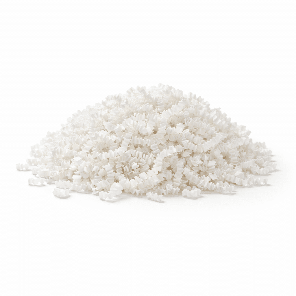 Wypełniacz ma formę skręconych, krótkich wiórek, które zachowują sprężystość i nie rozwarstwiają się podczas pakowania. Dzięki niepylącej formule i bezzapachowemu papierowi można go stosować nawet przy bardzo wrażliwych produktach.