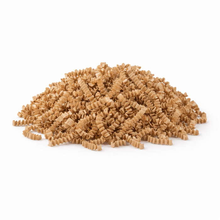 Wypełniacz zachowuje kształt, nie osypuje się, nie pachnie i nie brudzi. Dzięki temu nawet delikatne, jasne produkty pozostają czyste i zabezpieczone. Spiralne, skręcone wiórka dobrze wypełniają przestrzeń i dają uporządkowany, estetyczny efekt bez wysiłku.